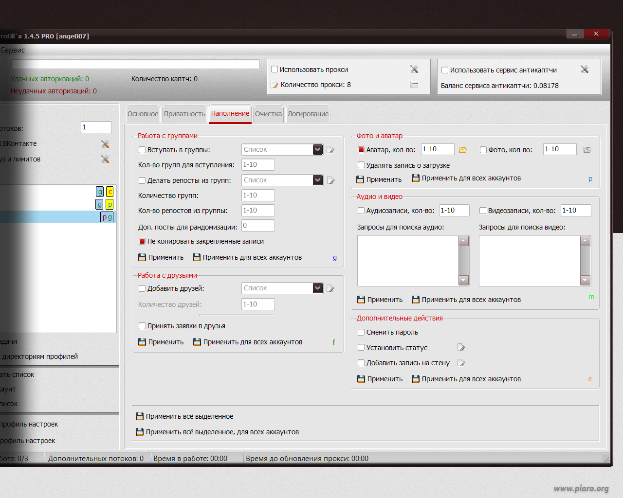 Быстро менять только нужную информацию на большом количестве аккаунтов одновременно. |